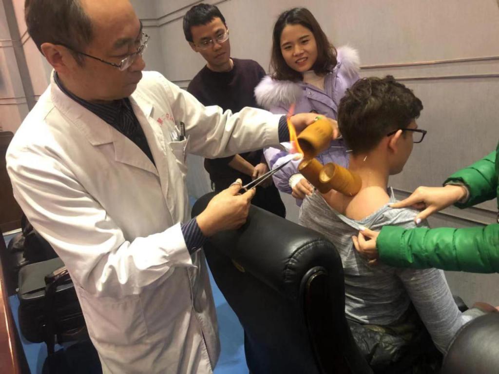 (顾兆军教授为外国职工针灸和拔火罐)
