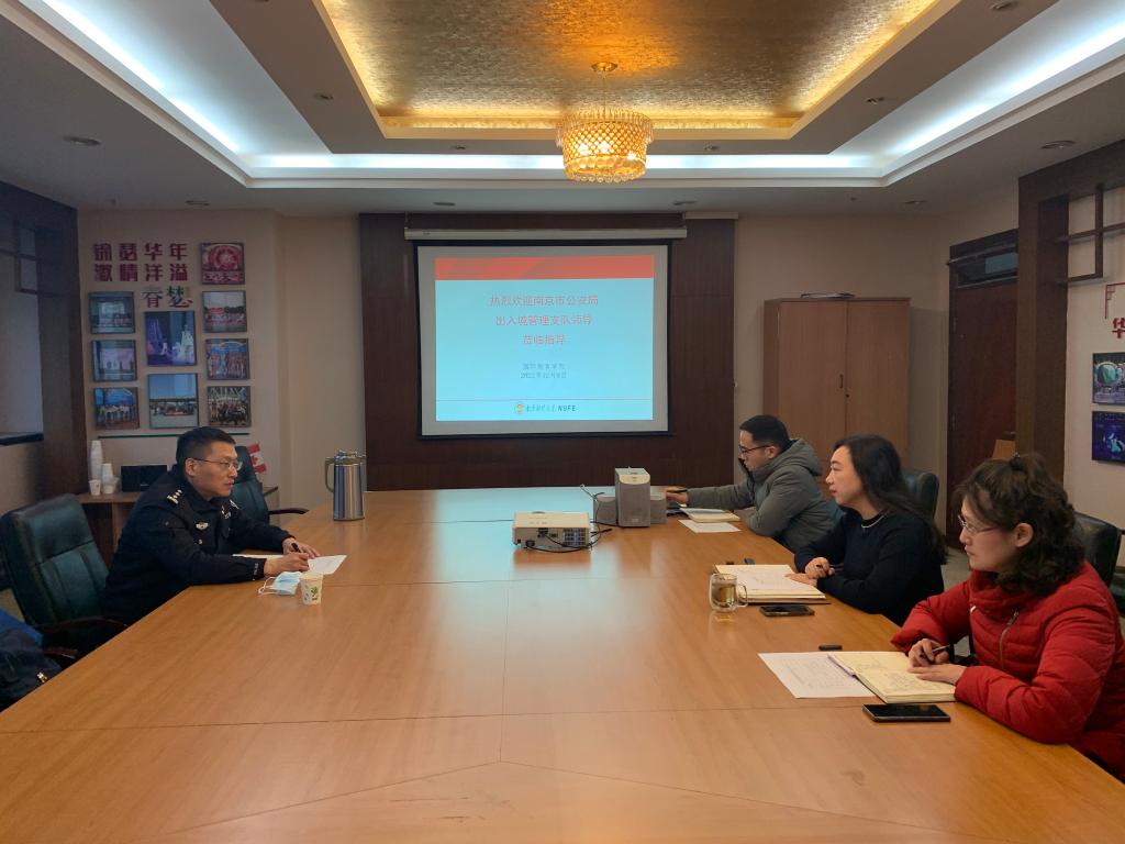 12月9日下午,南京市公安局出入境管理支队祝军警官莅临永乐高131net调研公司“外国职工法制课程”开展情况并指导工作。公司党工委书记王娟及相关老师出席会议。会议由公司党工委书记王娟主持。