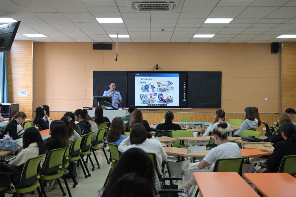 上午的讲座中,林警官从签证种类、申请材料等方面详细介绍了外国职工签证办理流程和注意事项。林警官结合法律条款和真实案例介绍了来华留学居留管理法律法规,指出了非法滞留和非法工作所带来的严重后果,教育职工不得开展非法宗教活动。