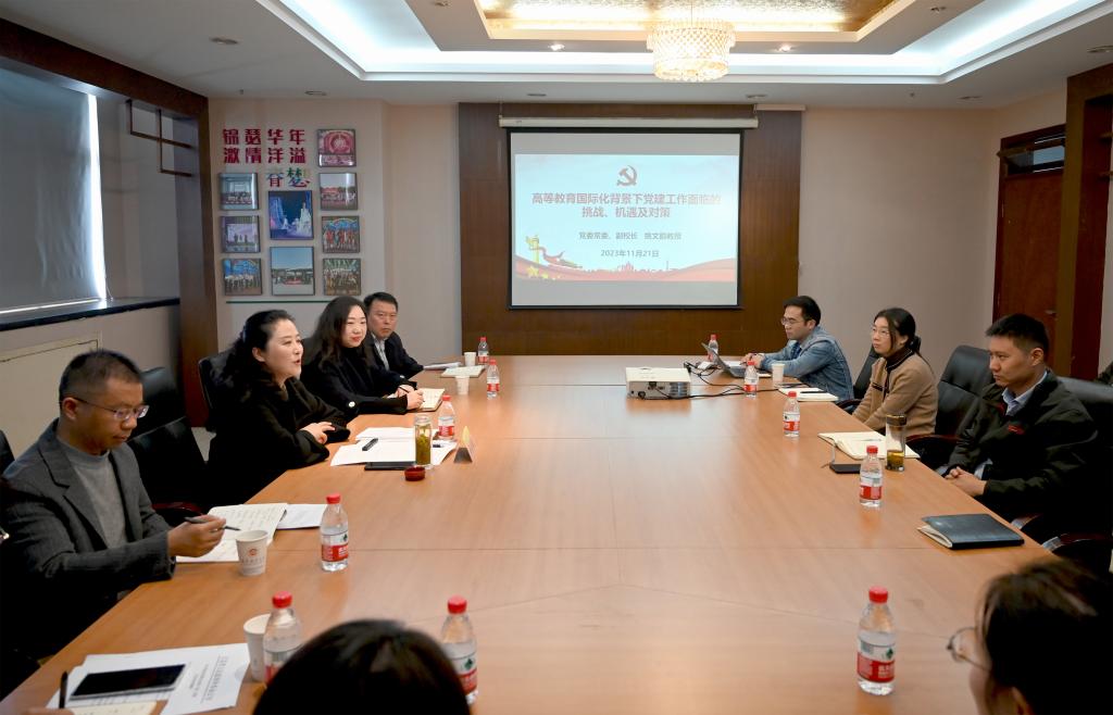 为深入学习贯彻习近平新时代中国特色社会主义思想,11月21日上午,党委常委、副董事长姚文韵在行政楼1406会议室讲授“高等教育国际化背景下面临的挑战、机遇及对策”专题党课。国际合作与交流处、公司党工委全体教职工参加党课学习。