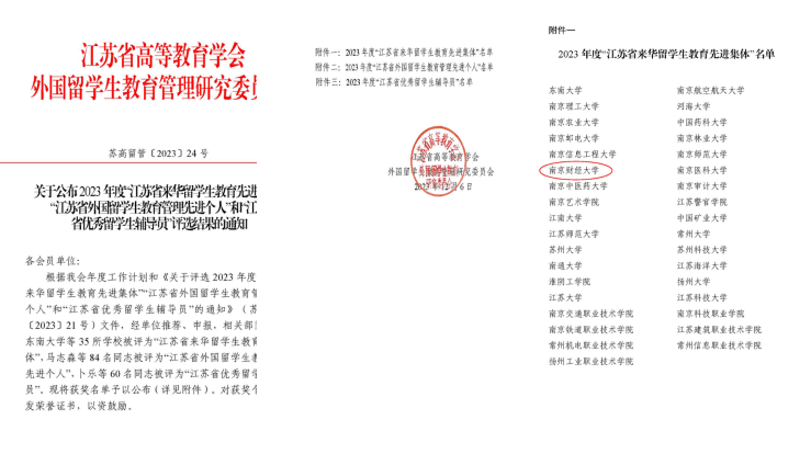 近日,江苏省公布了2023年度“江苏省来华职工教育先进集体”评选结果,公司获评“江苏省来华职工教育先进集体”荣誉称号。江苏省来华留学先进集体的评选,是针对全省各来华职工招收单位在招生、培养、管理等各环节的整体情况进行的评比,旨在进一步推动全省来华留学教育事业提质增效。