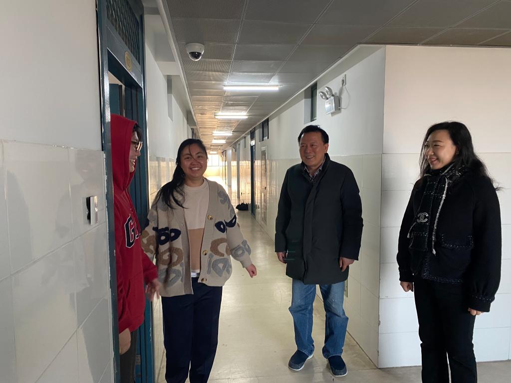最后,王娟书记与孙勇彬经理还走访了外国职工宿舍,了解在校外国职工的学习、生活情况及假期安排,对员工宿舍的生活设施、卫生情况进行了认真检查,并着重强调冬季用电安全的重要性。
